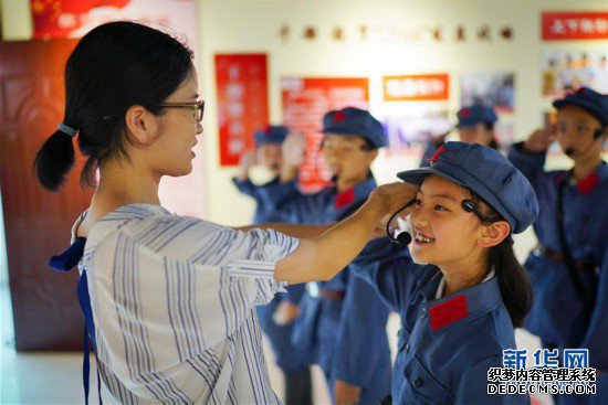 6月12日,在江西于都超变态页游源小学,教师谢淑芳为“红娃讲解员”作指导。 新华社记者 周密 摄